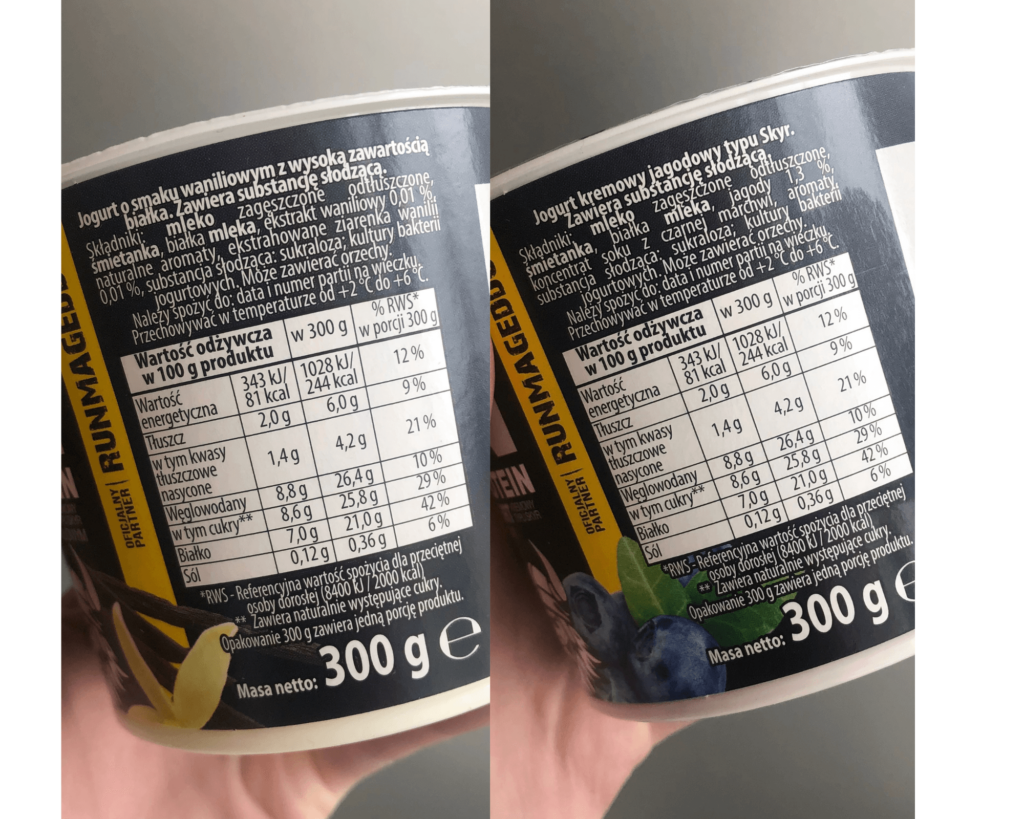 Nie zapychają i nie sklejają ust. W waniliowym można dostrzec ziarenka wanilii, w jagodowym trochę cząsteczek jagód. W przeciwieństwie do skyra z Piątnicy jagodowego mamy tutaj wszystko wymieszane, a nie jogurt i wsad jagodowy.
