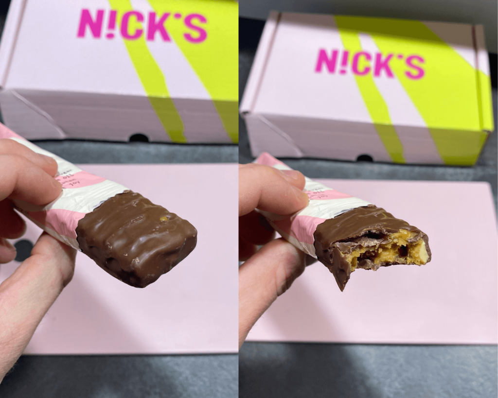 Baton Nick’s Peanut n’ Fudge okazał się świetną bezcukrową alternatywą dla popularnego Snickersa! Jest naprawdę bardzo do niego podobny! Co prawda nie znajdziemy tutaj warstwy nugatowej, ale czekoladę, karmel i orzechy już tak.