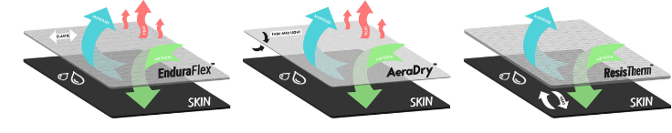 - EnduraFlex – rodzaj dzianiny o specjalistycznym, elastycznym materiale, nie obcierającym i nie odparzającym ciała. EnduraFlex wykorzystywany jest w odzieży przeznaczonej do treningów siłowych i wytrzymałościowych – wilgoć regularnie odprowadzana jest na zewnątrz oraz zapewniona jest stała cyrkulacja powietrza.