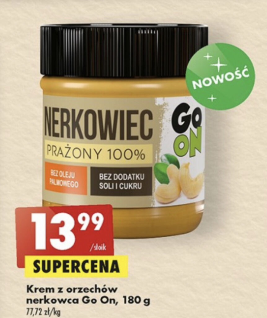 W najnowszej ofercie będzie można nabyć krem z orzechów nerkowca GO ON. W składzie znajdziemy 100% prażone nerkowce! Bez oleju palmowego i bez dodatku cukru oraz soli!