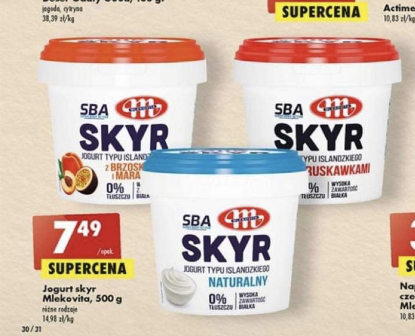 Jogurty Skyr Mlekovita w 500g opakowaniu! W Biedronce pojawią się w 500 gramowych wiaderkach w 3 wariantach: