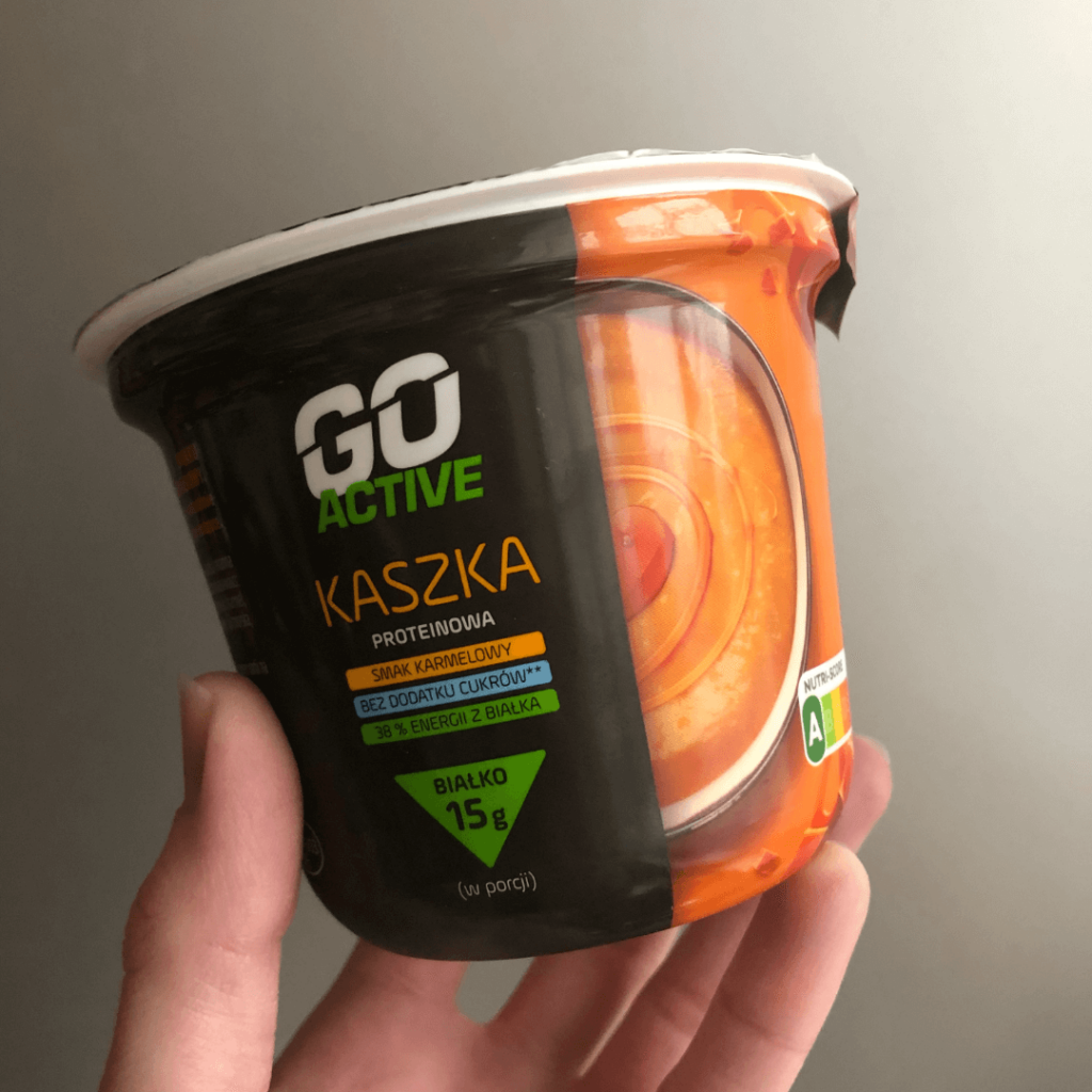 Go Active Kaszka Proteinowa Karmelowa to deser wysokobiałkowy, który wraz z Proteinowymi Puddingami Go Active niedawno pojawiła się w sklepach Biedronka!