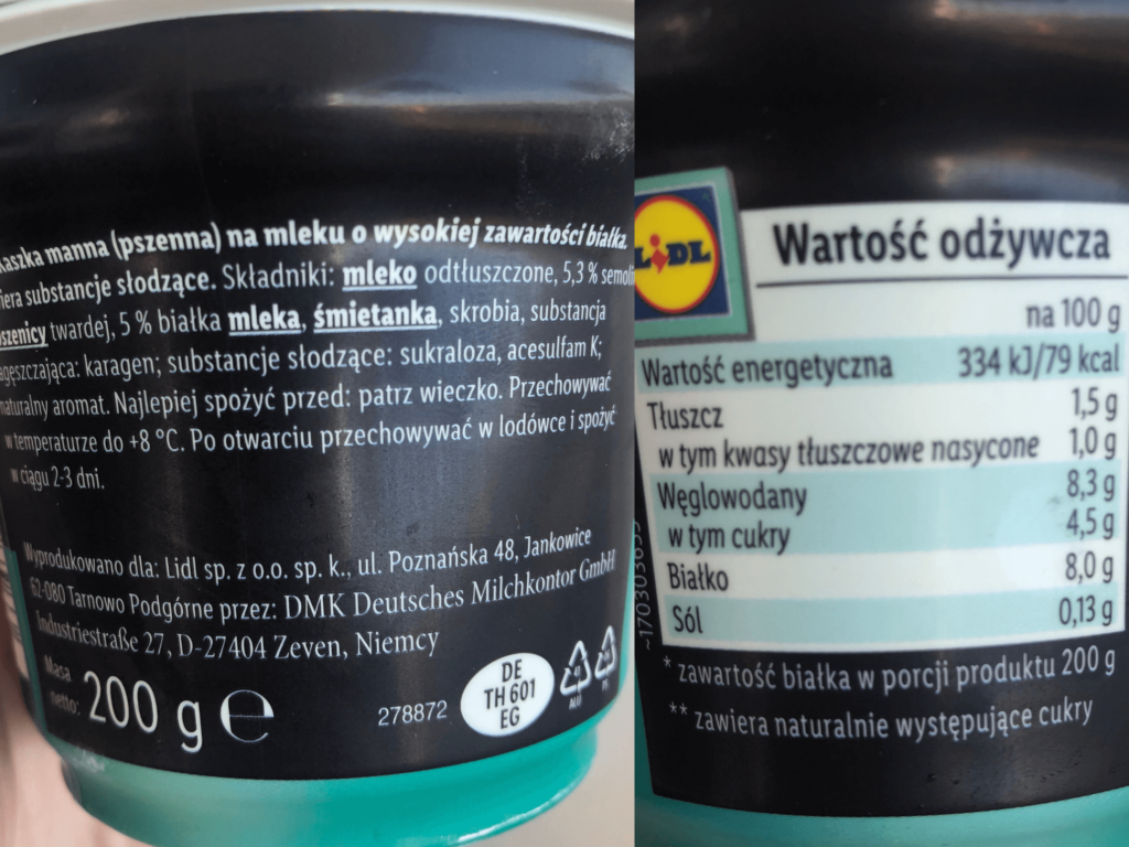 Kaszki Pilos High Protein to wysokobiałkowe desery mleczne na bazie kaszy manny. Dostępne są w stałej ofercie sklepu Lidl! Jak smakują i czy są warte swojej ceny?