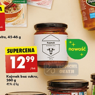 Produkt dołączył do oferty sklepu w dniu dzisiejszym – w czwartek, 21 września. Cena za Kajmak Bez Cukru w Biedronce to 12.99 zł. Wrzucicie go do koszyka?