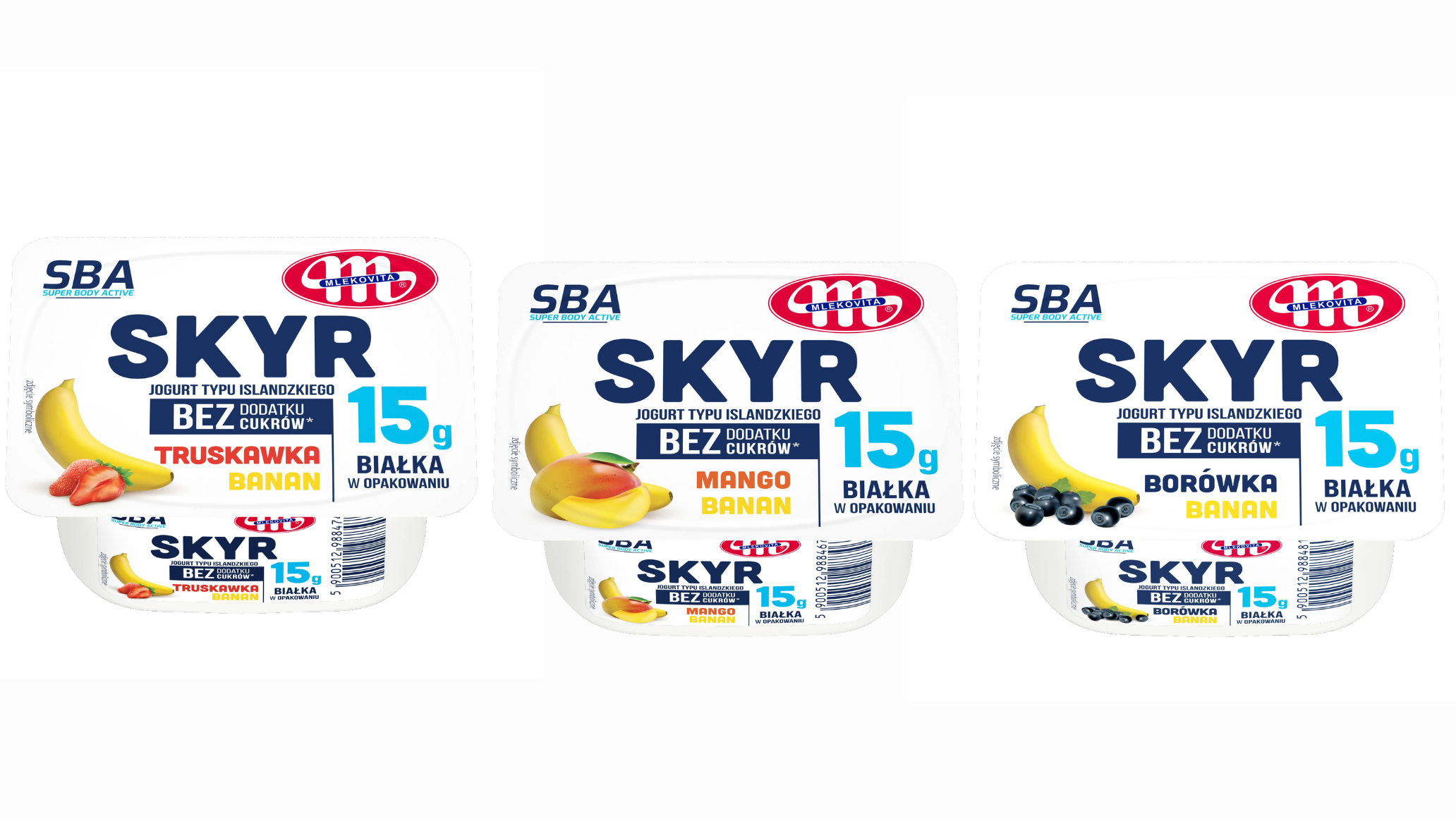 Skyr Bez Cukru to przedłużenie linii wysokobiałkowych produktów Super Body Active. Nowością w asortymencie marki jest owocowy skyr, czyli jogurt typu islandzkiego w 3 wersjach smakowych: