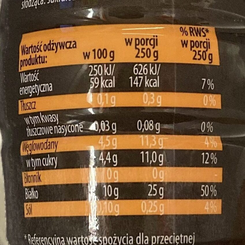 Obie z wersji smakowych napoju dostarczają aż 25g białka w porcji, zatem nazwanie produktu „proteinowym” ma w tym przypadku rzeczywiste potwierdzenie w makroskładnikach. Dodatkowo, jest niskokaloryczny, nie przekraczający 150 kcal w butelce napoju. Szybka, łatwa i mamy nadzieję – smaczna forma dostarczenia białka!
