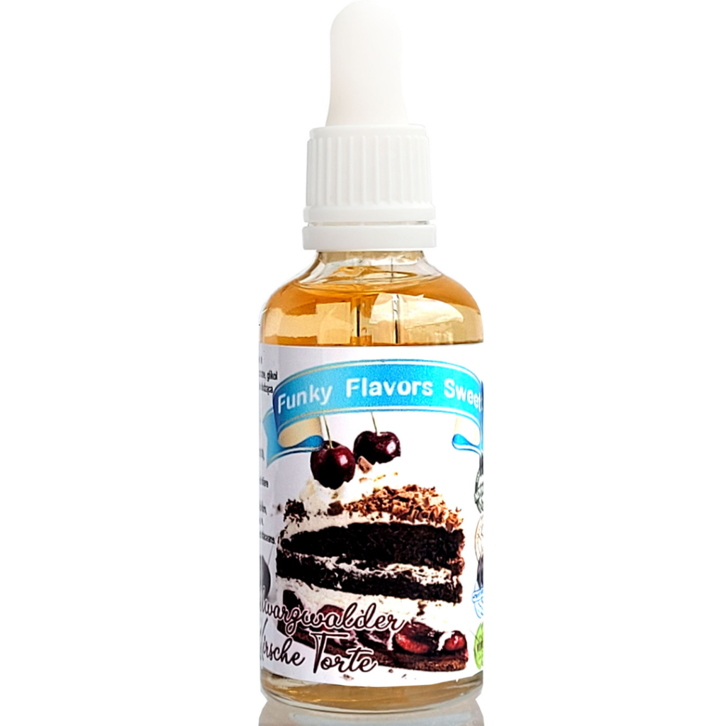 To aromat tortu czekoladowego z wiśniami! Aromat ma odzwierciedlać jak obiecuje producent, tort Black Forrest Cake, czyli czekoladowy tort z wiśniami i śmietankowym kremem! Aromat ma się różnić od aromatu Funky Flavors Chocolate Cherry (tutaj recenzja) właśnie śmietankowa nutą.