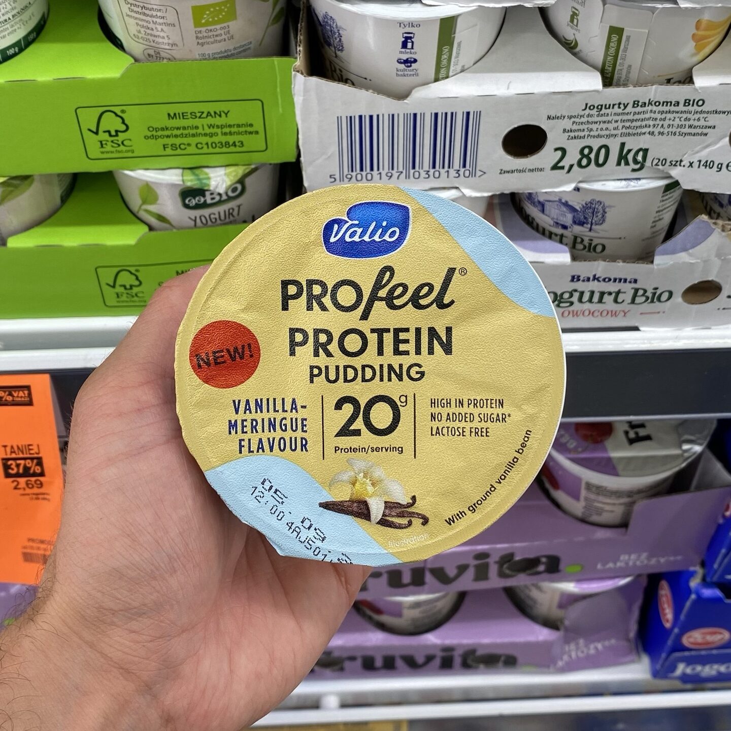 Szósty premierowy smak Valio PROfeel Protein Pudding to wanilia z pianką! Jak smakują puddingi tej marki? Odpowiedź znajdziesz w materiale na kanale Fit Recenzje – Wielkim Teście Puddingów Proteinowych.