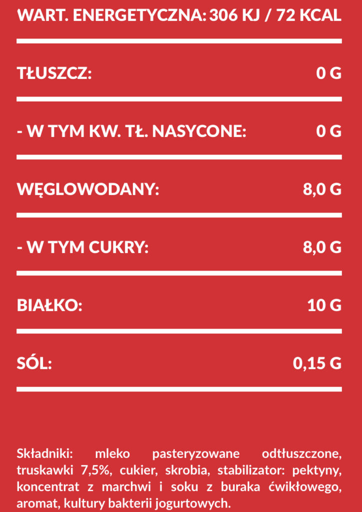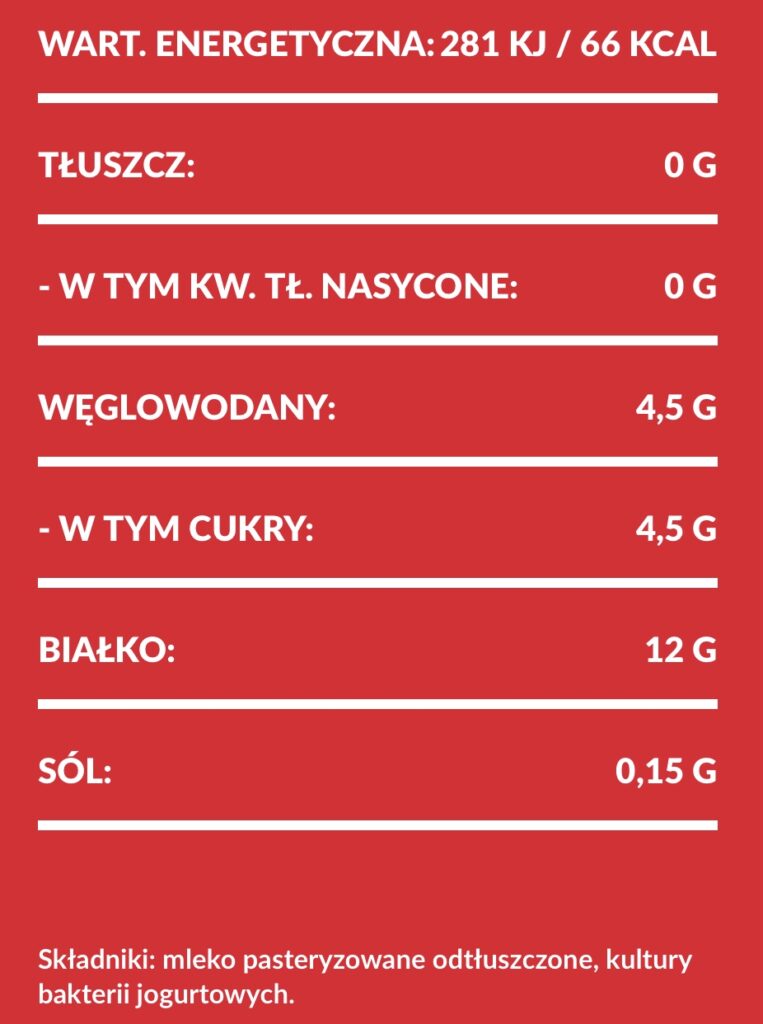 Skyry od Mlekovity to idealna propozycja dla osób aktywnych! Ich niewątpliwą zaletą jest wysoka zawartość białka – wersja naturalna ma aż 60g w wiaderku, a owocowe 50g! Skład również jest bardzo prosty, jednak w smakach owocowych znajdziemy cukier.