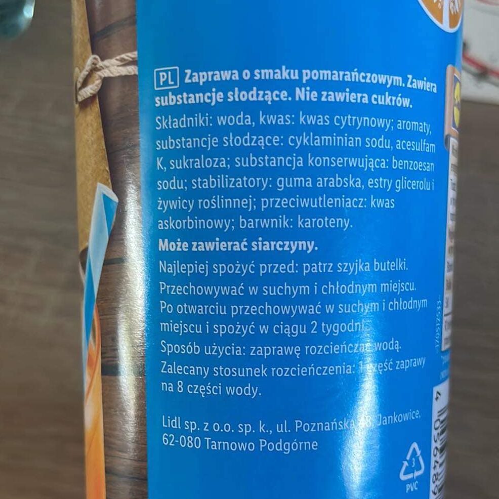 Ile kalorii ma syrop owocowy bez cukru z Lidla?