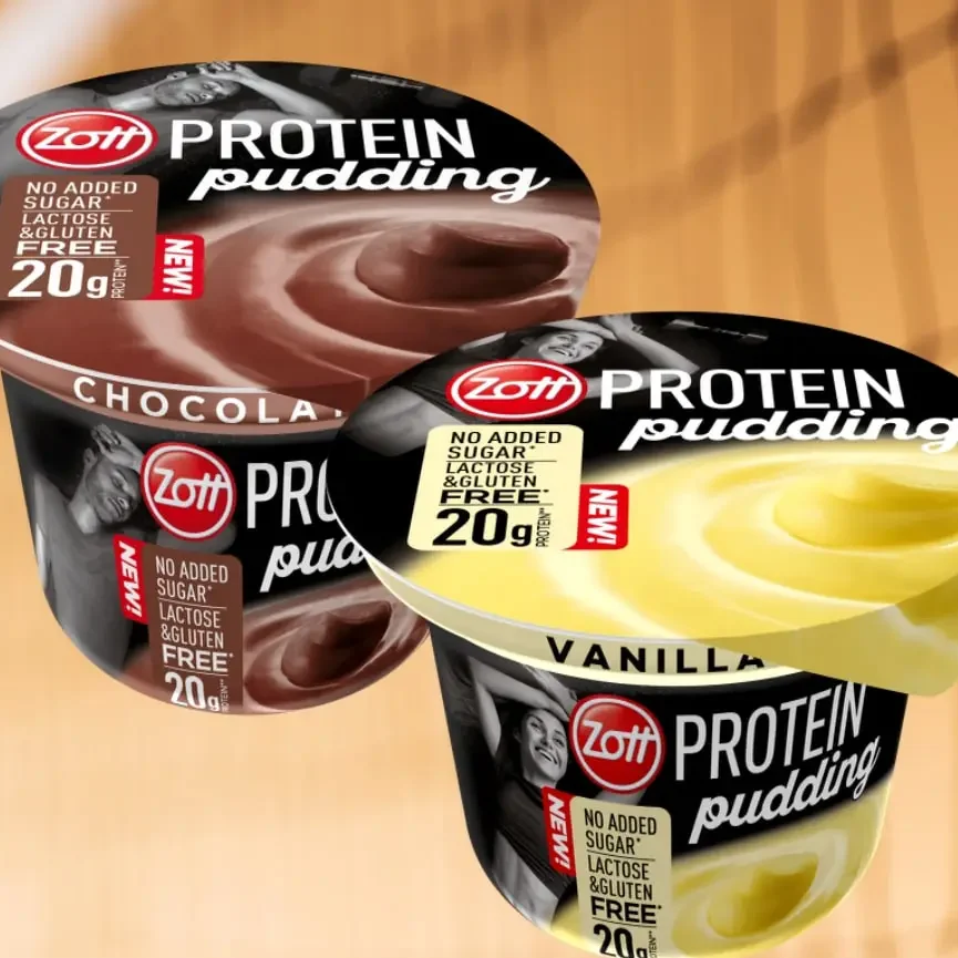 - Zott Protein Pudding Chocolate – 160 kcal, 20g białka