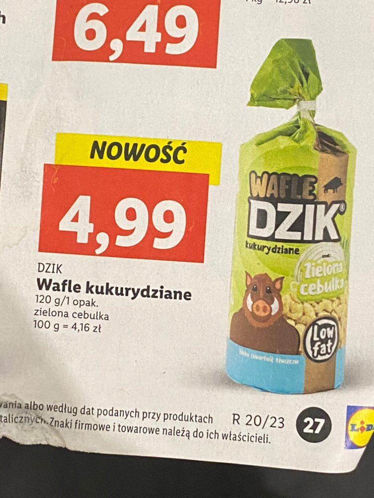 Najnowszy produkt od WK dostępny będzie od czwartku, 18.05.2023. Wafle DZIK Zielona Cebulka kupimy w sieci sklepu Lidl w cenie 4.99 za opakowanie 120g (15 wafli).