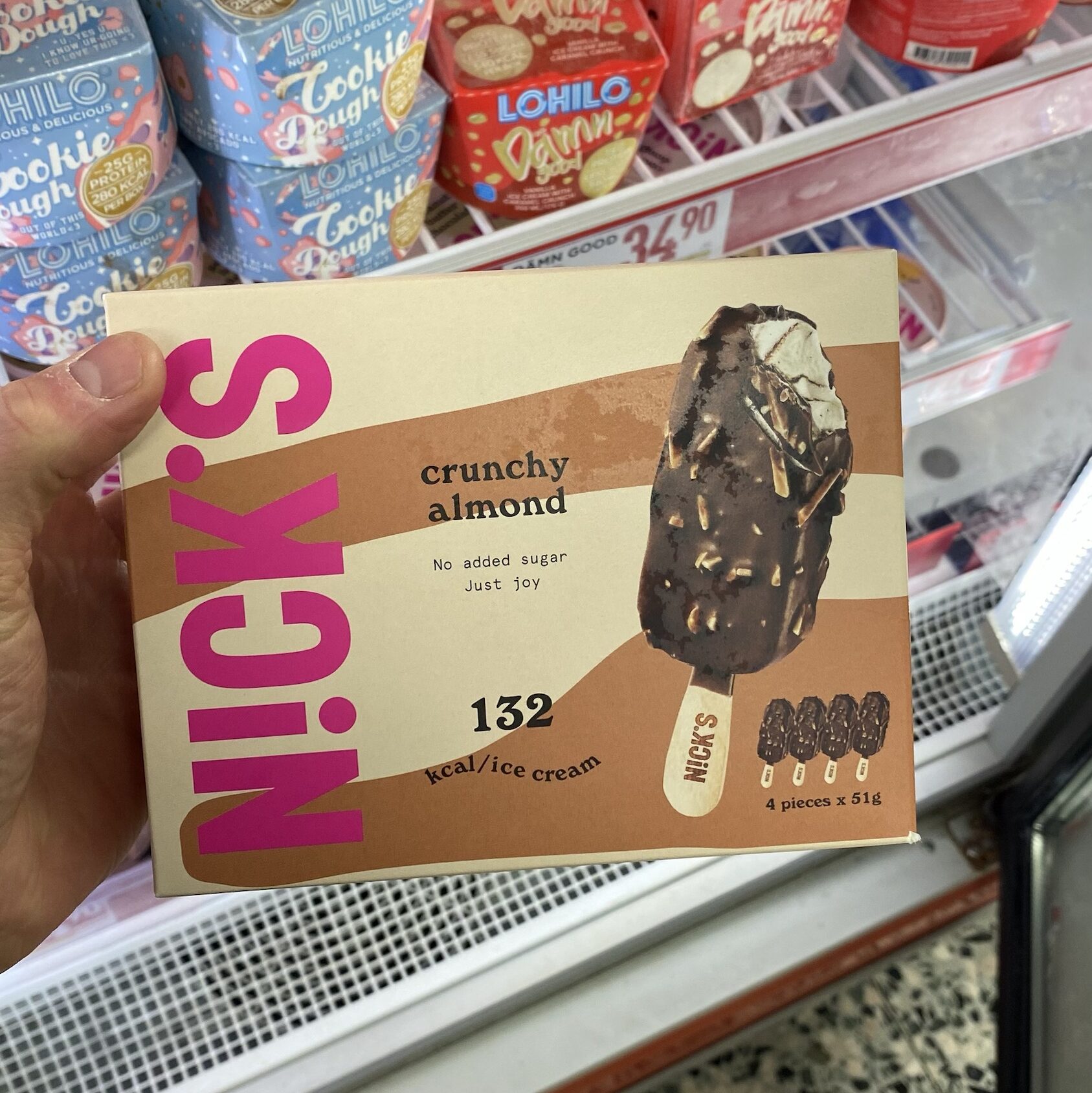 Sklepy w Szwecji posiadają szeroki wybór niskokalorycznych lodów marki Nick’s. Znajdziemy wersje smakowe takie jak: Sea Salt Caramel, Nougat Swirl, Vanilla Caramel Crunch, Crunchy Almond i Peanut Butter Chocolate. Lody dostępne są w opakowaniach o pojemności 473ml, 850ml oraz w wersji na patyku. Nie zawierają cukru i oleju palmowego.